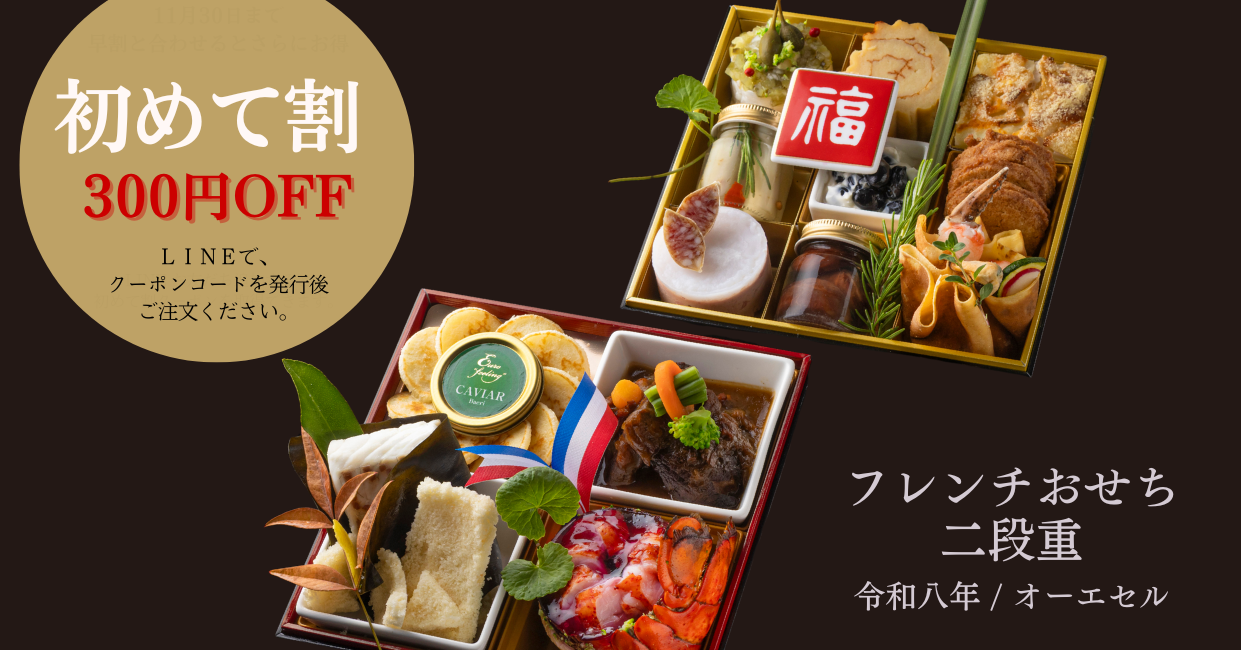 オーエセルのおせち料理は、【▼初めての方】 と 【▼リピート注文】のどちらかより、ご注文下さい。