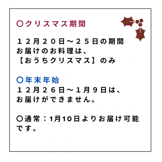 12月20日〜25日の期間はおうちクリスマスのみ>>>
